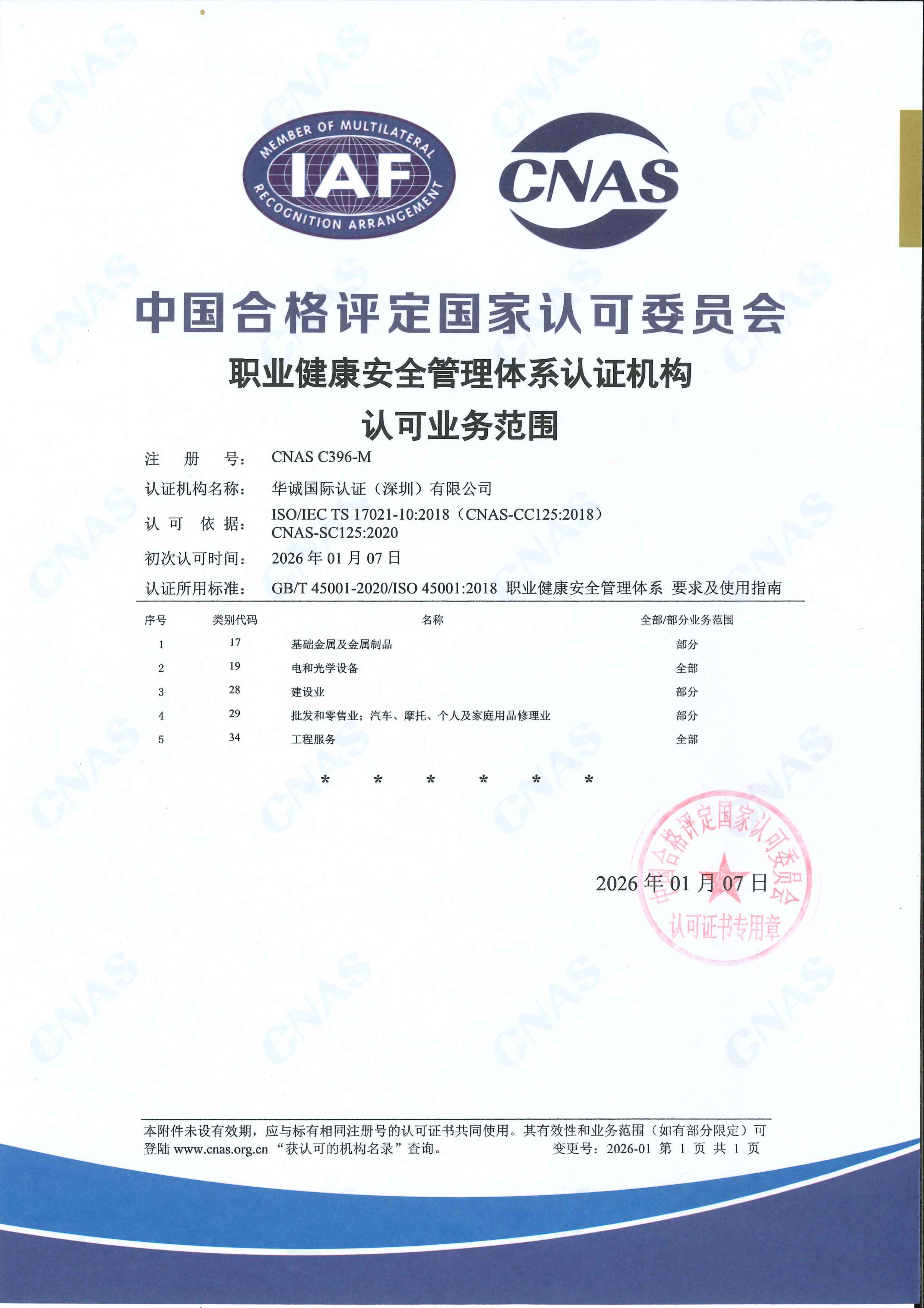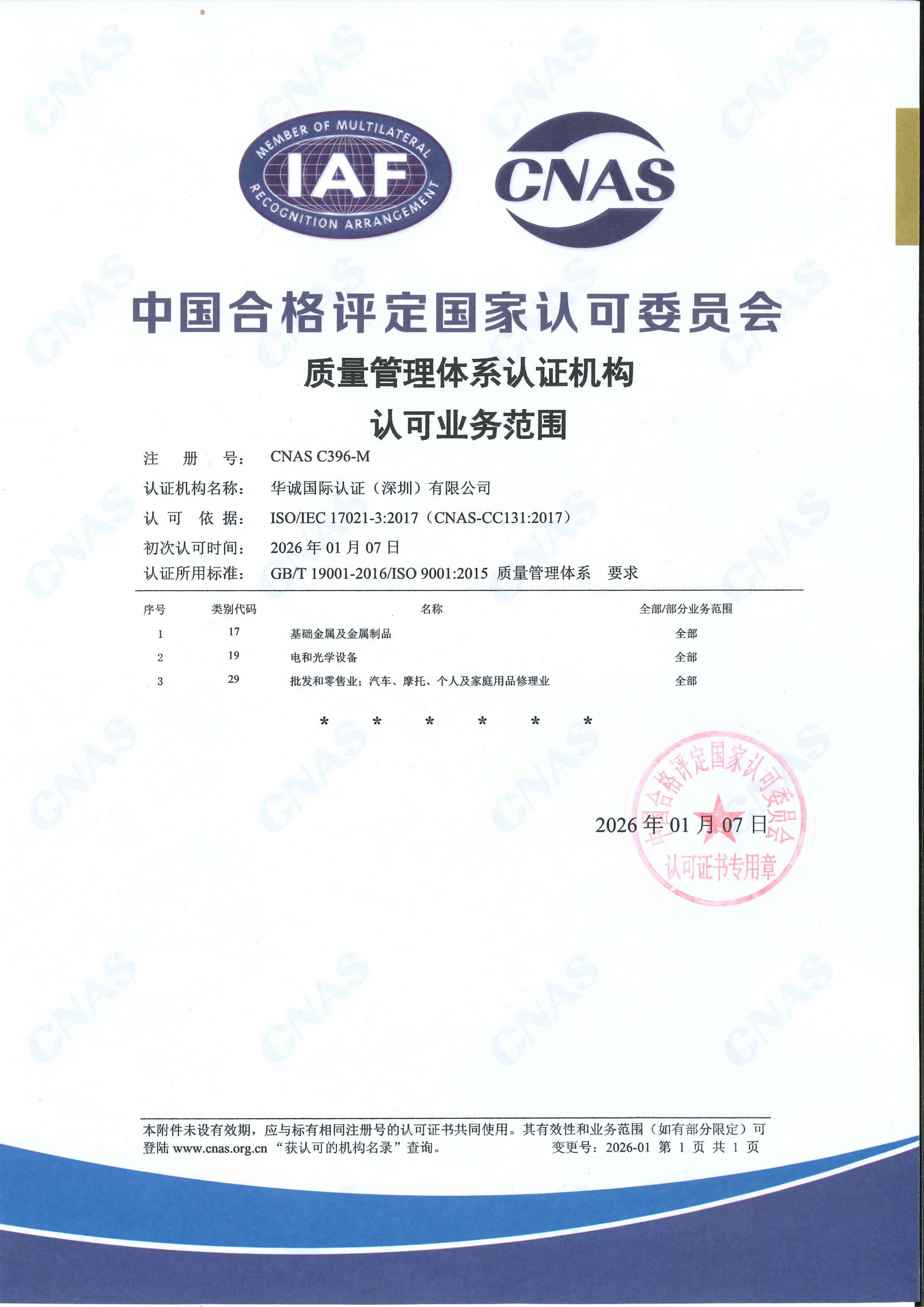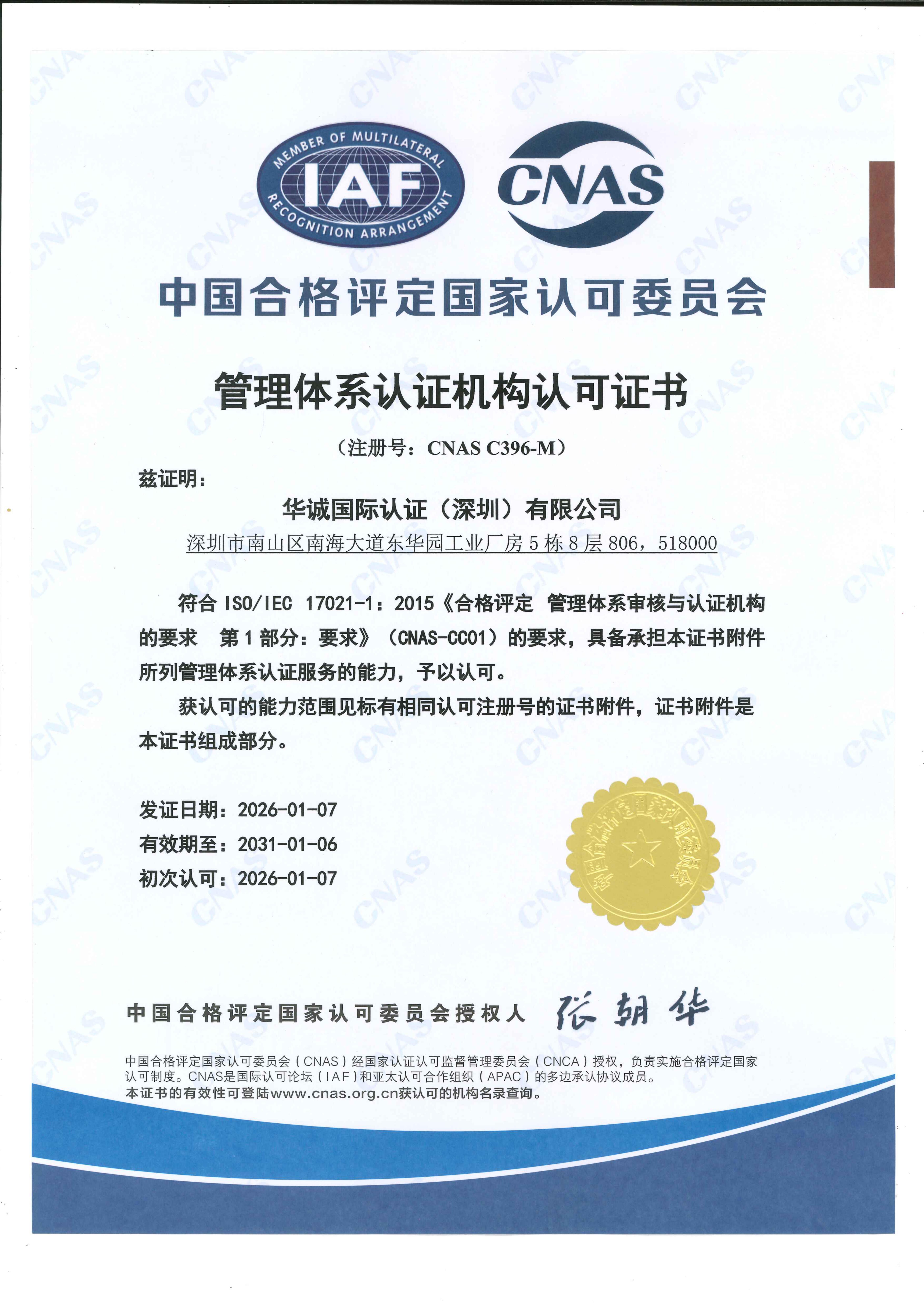 CNAS认可证书